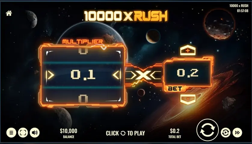 Prova 10000 x Rush online gratis in modalità demo, senza download o registrazione.