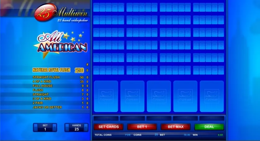 25H All American (Espresso) è un gioco di video poker di Espresso Games. Qui sopra, puoi giocare gratis in modalità demo.