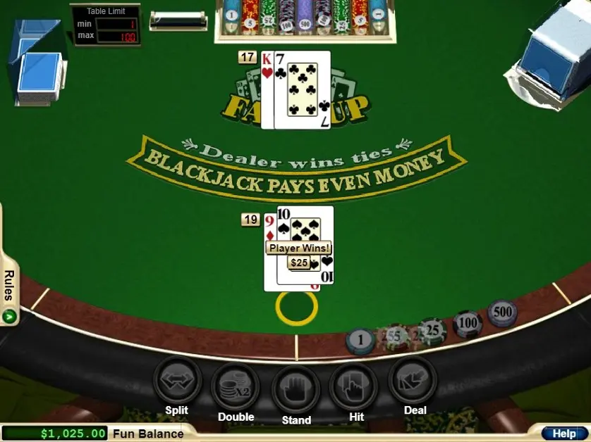 Face Up 21 è un gioco di blackjack di Realtime Gaming. Qui sopra puoi giocare gratis in modalità demo.