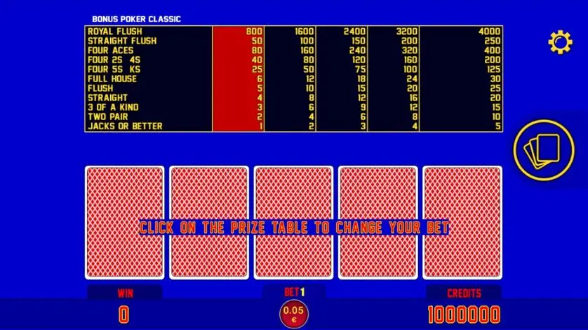 Prova Bonus Poker online gratis in modalità demo, senza download o registrazione.