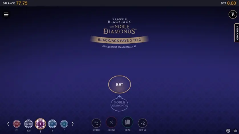 Prova Classic Blackjack with Noble Diamonds online gratis in modalità demo, senza download o registrazione.