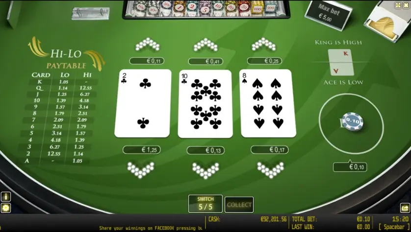 Prova Hi-Lo online gratis in modalità demo, senza download o registrazione.