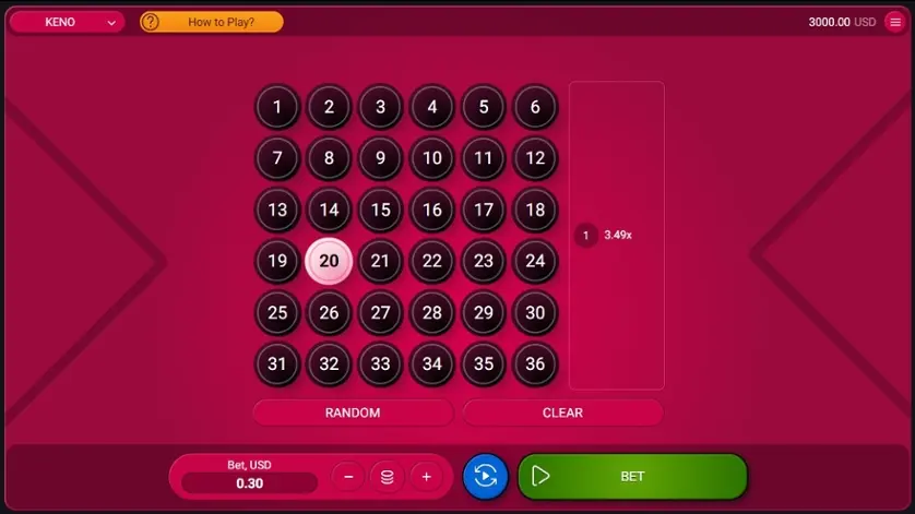 Prova Keno (Spribe) online gratis in modalità demo, senza download o registrazione.