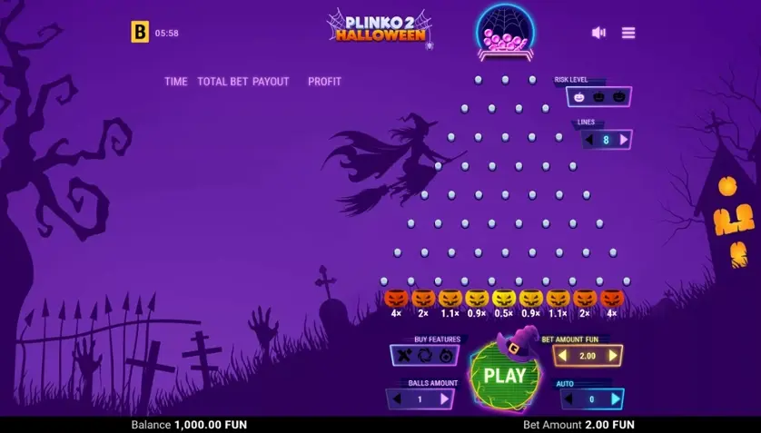 Prova Plinko 2 Halloween online gratis in modalità demo, senza download o registrazione.