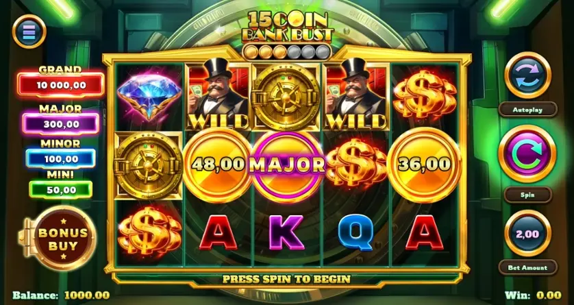 Prova la slot online 15 Coin Bank Bust gratis in modalità demo, senza download o registrazione.