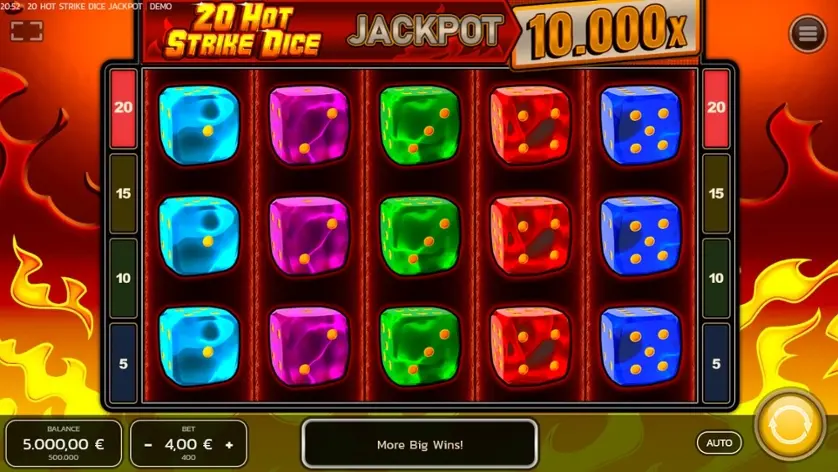 Prova la slot online 20 Hot Strike Dice Jackpot gratis in modalità demo, senza download o registrazione.