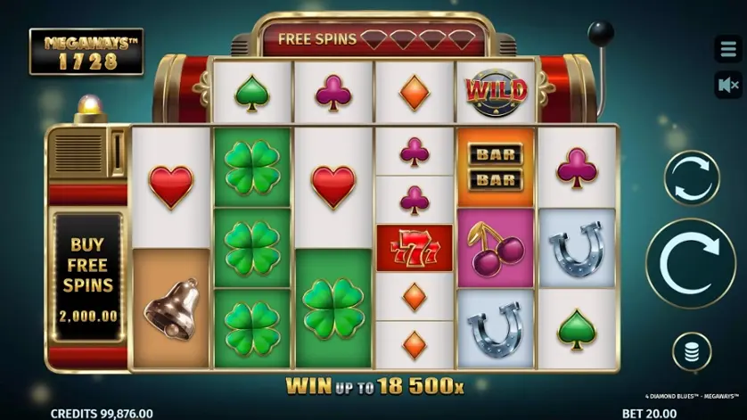Prova la slot online 4 Diamond Blues Megaways gratis in modalità demo, senza download o registrazione.