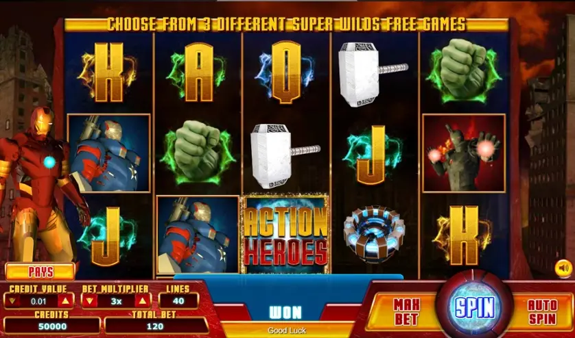 Prova la slot online Action Heroes gratis in modalità demo, senza download o registrazione.