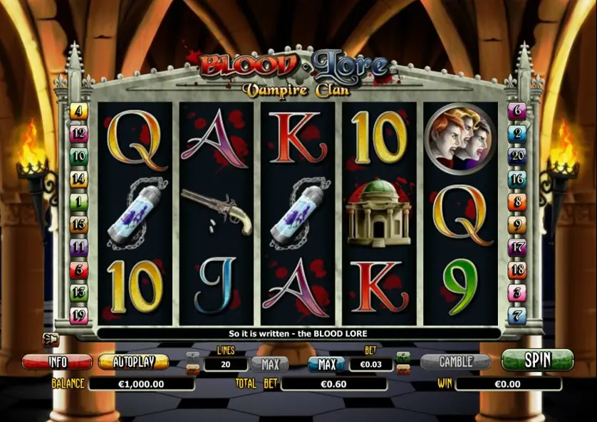 Bloodlore Vampire Clan è una slot machine creata da Nextgen Gaming. In base al numero di giocatori che la cercano, Bloodlore Vampire Clan non è una slot molto popolare. Questo, però, non significa necessariamente che sia una cattiva slot: provala e decidi tu, oppure esplora i giochi da casinò più popolari.
