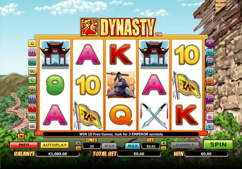 Prova la slot online Dynasty gratis in modalità demo, senza download o registrazione.