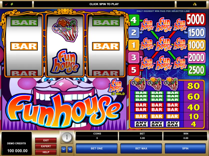 Funshouse è una slot machine creata da Apricot (Microgaming). In base al numero di giocatori che la cercano, Funshouse non è una slot molto popolare. Questo, però, non significa necessariamente che sia una cattiva slot: provala e decidi tu, oppure esplora i giochi da casinò più popolari.