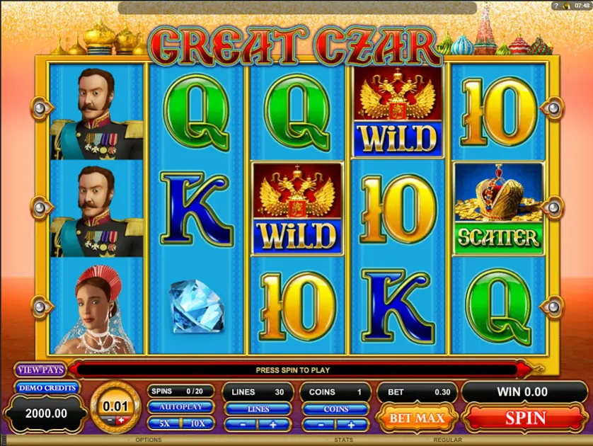 Prova la slot online Great Czar gratis in modalità demo, senza download o registrazione.