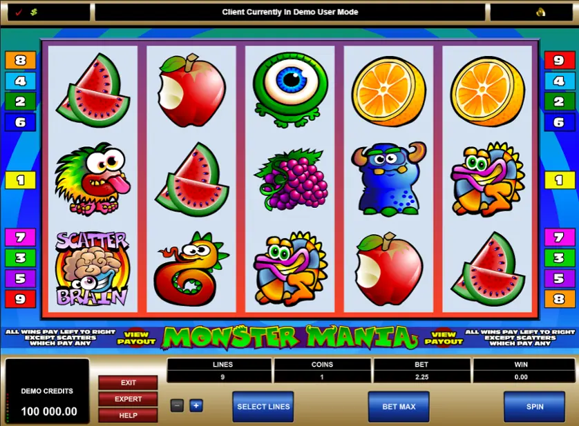 Monster Mania è una slot machine creata da Apricot (Microgaming). In base al numero di giocatori che la cercano, Monster Mania non è una slot molto popolare. Questo, però, non significa necessariamente che sia una cattiva slot: provala e decidi tu, oppure esplora i giochi da casinò più popolari.