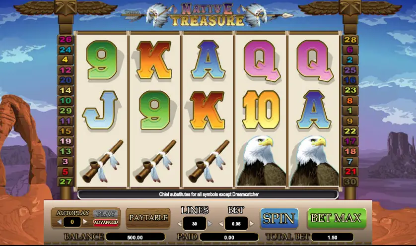 Prova la slot online Native Treasure gratis in modalità demo, senza download o registrazione.