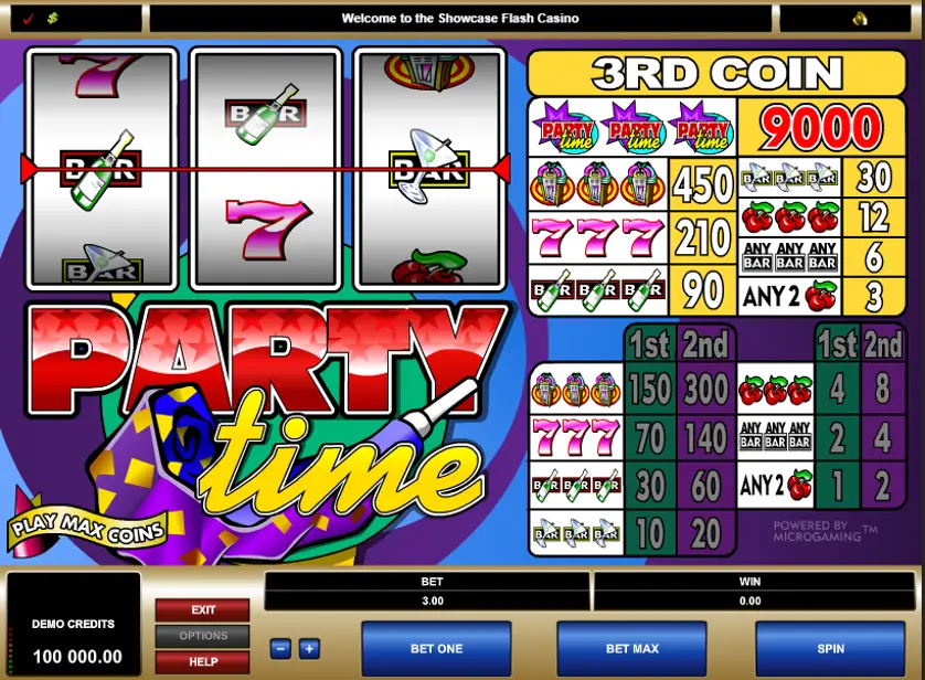 Party Time è una slot machine creata da Apricot (Microgaming). In base al numero di giocatori che la cercano, Party Time è una slot abbastanza popolare. Non è fra i titoli più conosciuti, ma ha catturato l'attenzione di alcuni giocatori di slot. Provala gratis per decidere se ti piace.