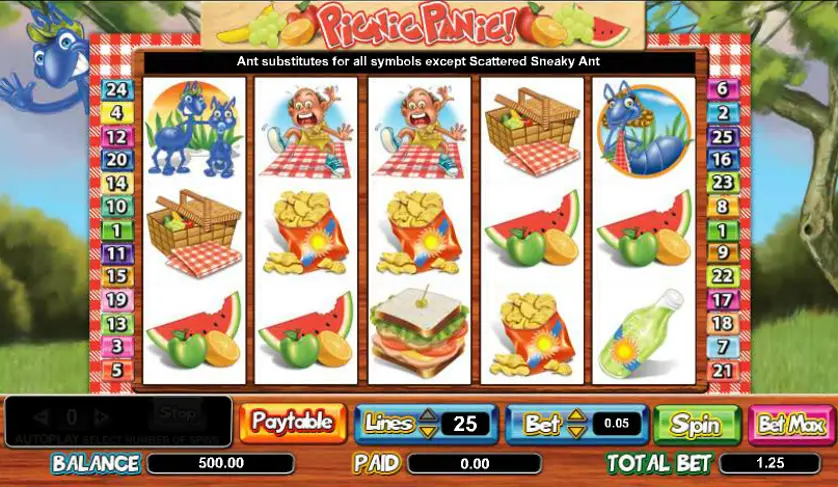 Prova la slot online Picnic Panic gratis in modalità demo, senza download o registrazione.