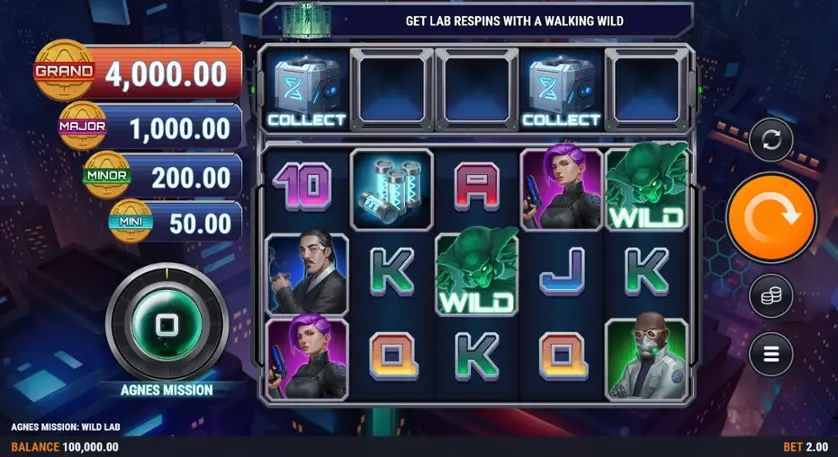 Prova la slot online Agnes Mission: Wild Lab gratis in modalità demo, senza download o registrazione.
