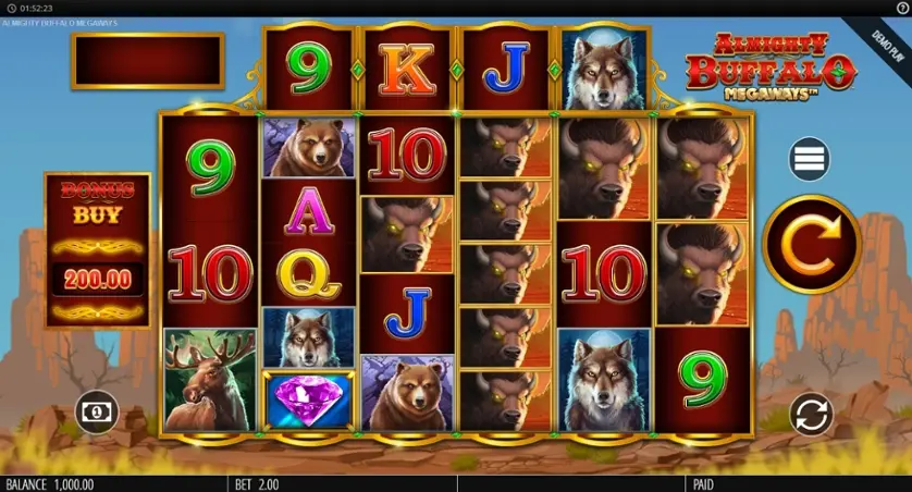 Prova la slot online Almighty Buffalo Megaways gratis in modalità demo, senza download o registrazione.