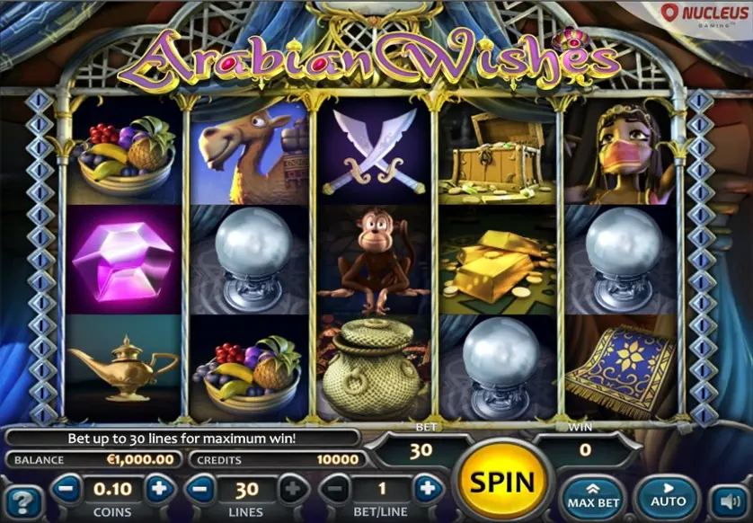 Arabian Wishes è una slot machine creata da Nucleus Gaming. In base al numero di giocatori che la cercano, Arabian Wishes non è una slot molto popolare. Questo, però, non significa necessariamente che sia una cattiva slot: provala e decidi tu, oppure esplora i giochi da casinò più popolari.