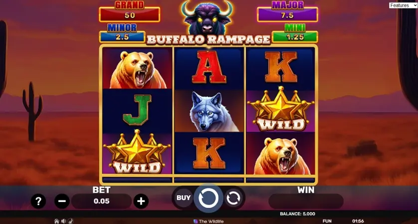 Prova la slot online Buffalo Rampage Hold & Hit 3x3 gratis in modalità demo, senza download o registrazione.