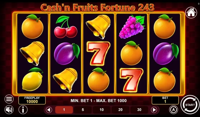 Prova la slot online Cash'n Fruits Fortune 243 gratis in modalità demo, senza download o registrazione.