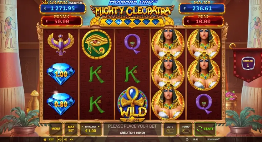 Prova la slot online Diamond Link Mighty Cleopatra gratis in modalità demo, senza download o registrazione.