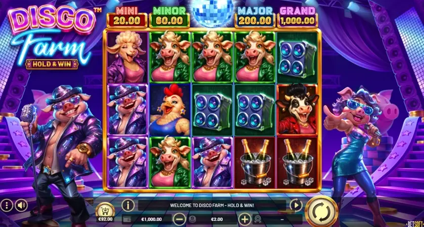 Prova la slot online Disco Farm gratis in modalità demo, senza download o registrazione.