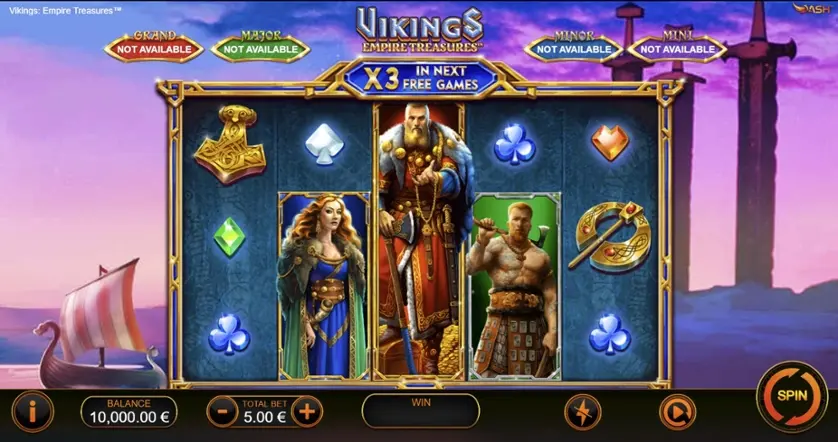 Prova la slot online Empire Treasures: Vikings gratis in modalità demo, senza download o registrazione.