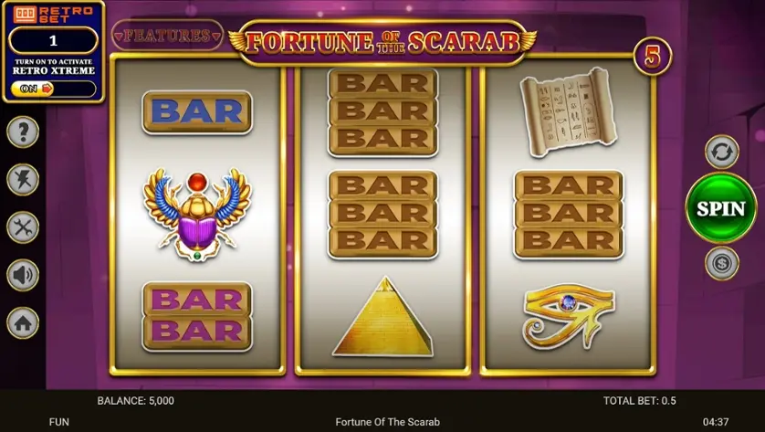 Fortune of the Scarab è una slot machine creata da Retro Gaming. In base al numero di giocatori che la cercano, Fortune of the Scarab non è una slot molto popolare. Questo, però, non significa necessariamente che sia una cattiva slot: provala e decidi tu, oppure esplora i giochi da casinò più popolari.