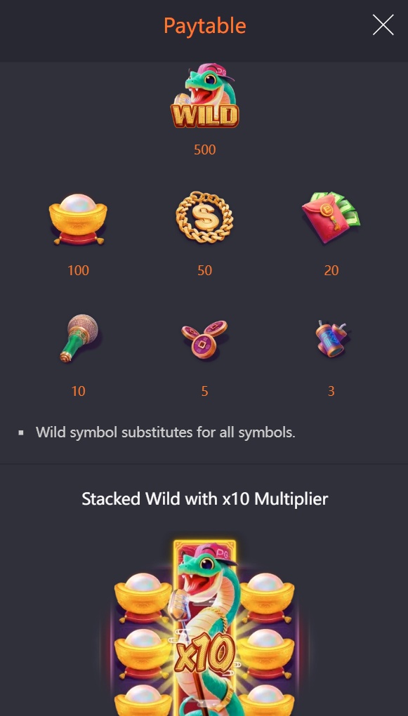 PGsoft ha dato a questo titolo alla moda un che di hip-hop, con il serpente rapper Golden Scale a rappresentare la ricchezza mentre domina la scena del gioco.