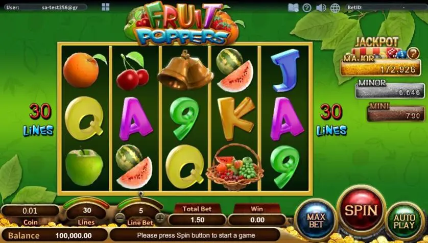 Prova la slot online Fruit Poppers gratis in modalità demo, senza download o registrazione.