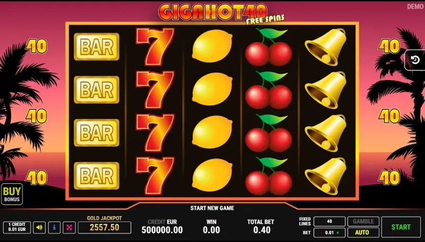 Prova la slot online Giga Hot 40 Free Spins gratis in modalità demo, senza download o registrazione.