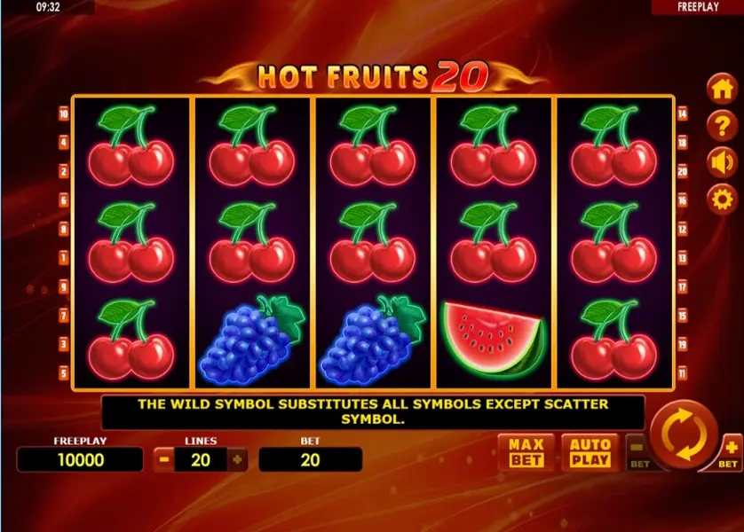 Prova la slot online Hot Fruits 20 gratis in modalità demo, senza download o registrazione.