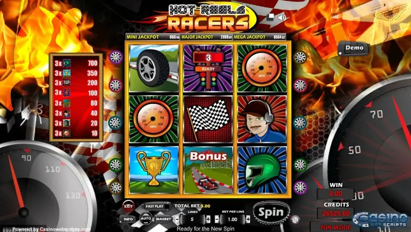 Prova la slot online Hot Reels Racers gratis in modalità demo, senza download o registrazione.