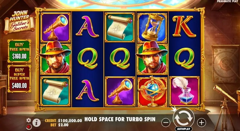 Prova la slot online John Hunter and Galileo's Secret gratis in modalità demo, senza download o registrazione.