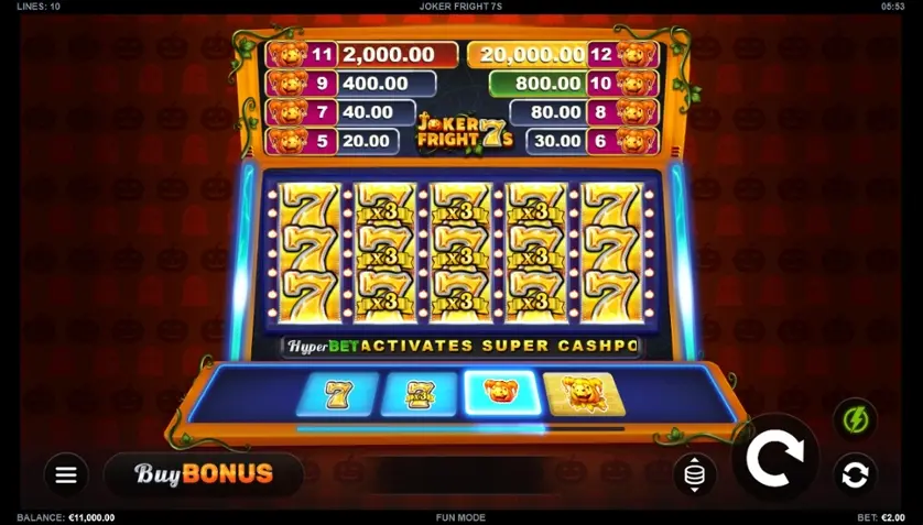 Prova la slot online Joker Fright 7s gratis in modalità demo, senza download o registrazione.