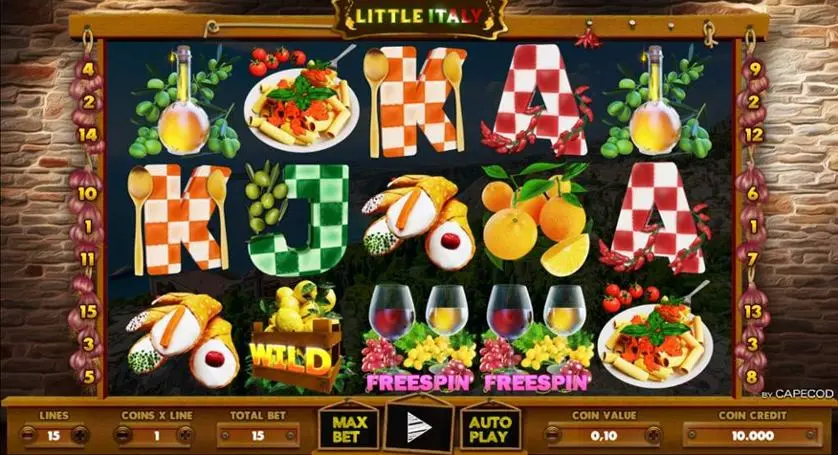 Little Italy è una slot machine creata da CAPECOD Gaming. In base al numero di giocatori che la cercano, Little Italy non è una slot molto popolare. Questo, però, non significa necessariamente che sia una cattiva slot: provala e decidi tu, oppure esplora i giochi da casinò più popolari.