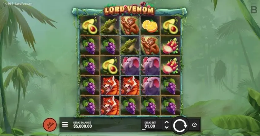 Lord Venom potrebbe non essere stata sviluppata da Hacksaw Gaming, ma ha un layout e uno stile molto simili a quelli dei giochi di questa licenza. La slot è ambientata nel bel mezzo di una giungla, resa con uno sfondo verde, statico e nebuloso, che riesce bene nel creare un’atmosfera di gioco carica di suspense.