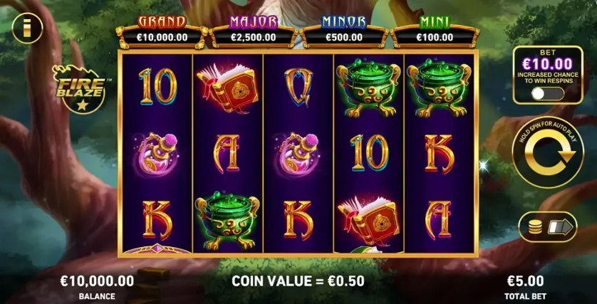 Prova la slot online Mega Fire Blaze: 3 Wizards gratis in modalità demo, senza download o registrazione.