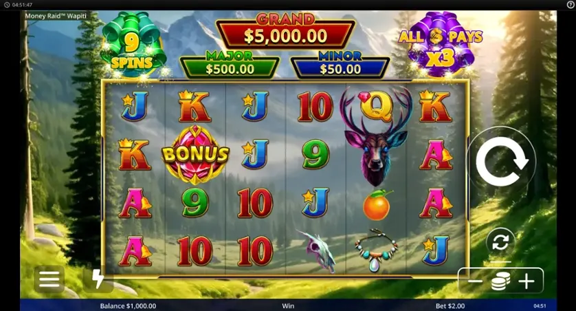 Prova la slot online Money Raid Wapiti gratis in modalità demo, senza download o registrazione.