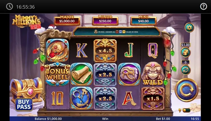 Prova la slot online Mummy’s Millions Christmas gratis in modalità demo, senza download o registrazione.
