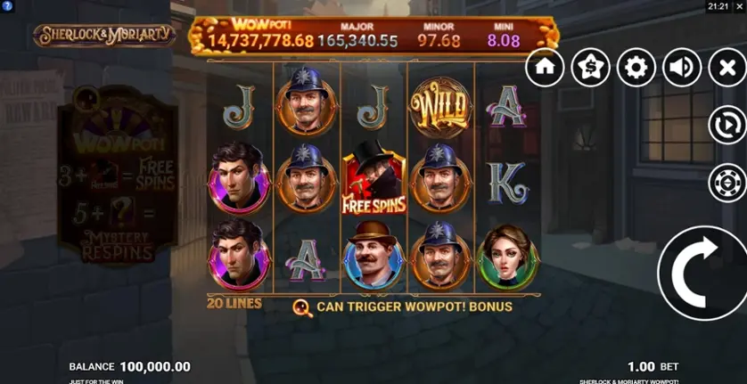 Prova la slot online Sherlock and Moriarty WowPot gratis in modalità demo, senza download o registrazione.