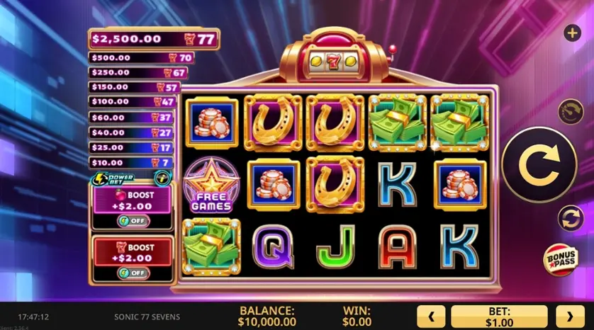 Prova la slot online Sonic 77 Sevens gratis in modalità demo, senza download o registrazione.