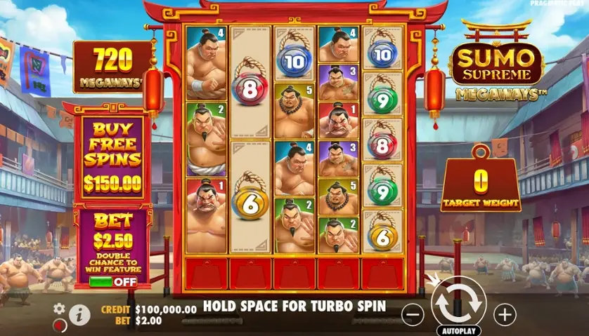 Prova la slot online Sumo Supreme Megaways gratis in modalità demo, senza download o registrazione.
