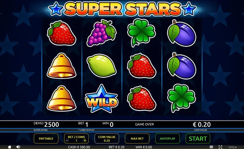 Super Stars è una slot machine creata da Holland Power Gaming. In base al numero di giocatori che la cercano, Super Stars non è una slot molto popolare. Questo, però, non significa necessariamente che sia una cattiva slot: provala e decidi tu, oppure esplora i giochi da casinò più popolari.
