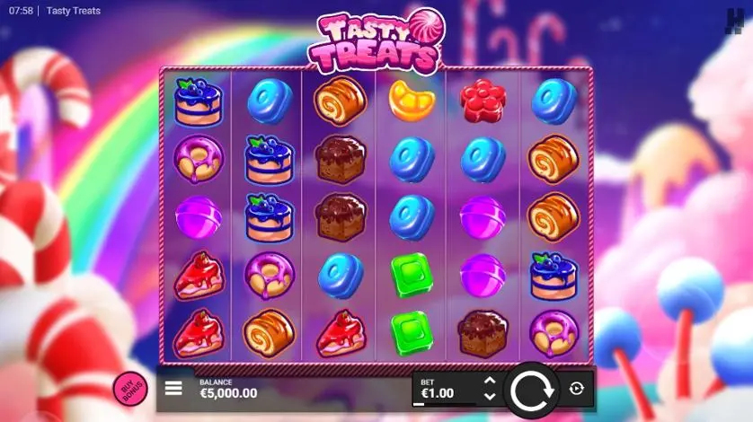 Piena di sfavillanti colori, con una musica allegra e un tema di gioco incentrato sui dessert, Tasty Treats si rivela una slot vivace, che fa immediatamente pensare a giochi quali Candy Crush. I rulli sono agghindati con ciambelle e tortine - ma non mancano marmellate, blocchi di cioccolata e caramelle.