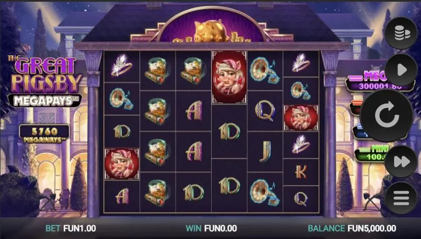 Prova la slot online The Great Pigsby Megapays gratis in modalità demo, senza download o registrazione.