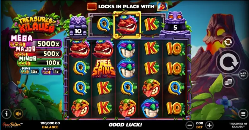 Prova la slot online Treasures of Kilauea gratis in modalità demo, senza download o registrazione.
