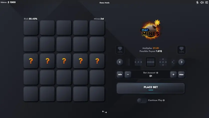 Prova 1Tap Mines online gratis in modalità demo, senza download o registrazione.