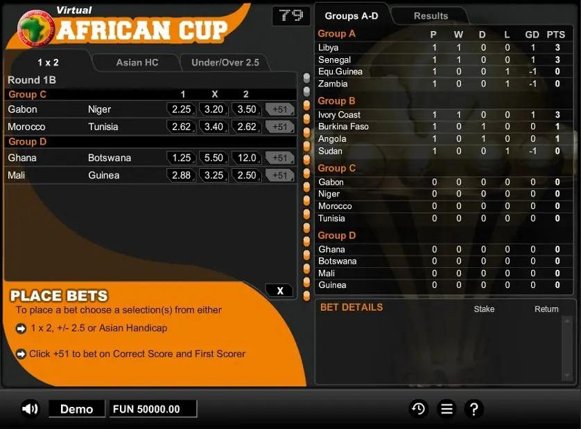 Prova Virtual African Cup online gratis in modalità demo, senza download o registrazione.